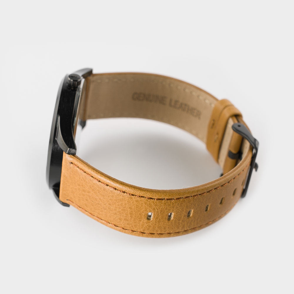This impressive minimalist design is highlighted by tan genuine leather 22 mm straps, which give this watch a timeless character.