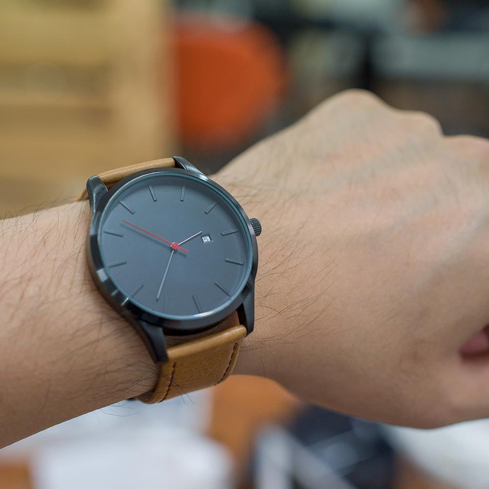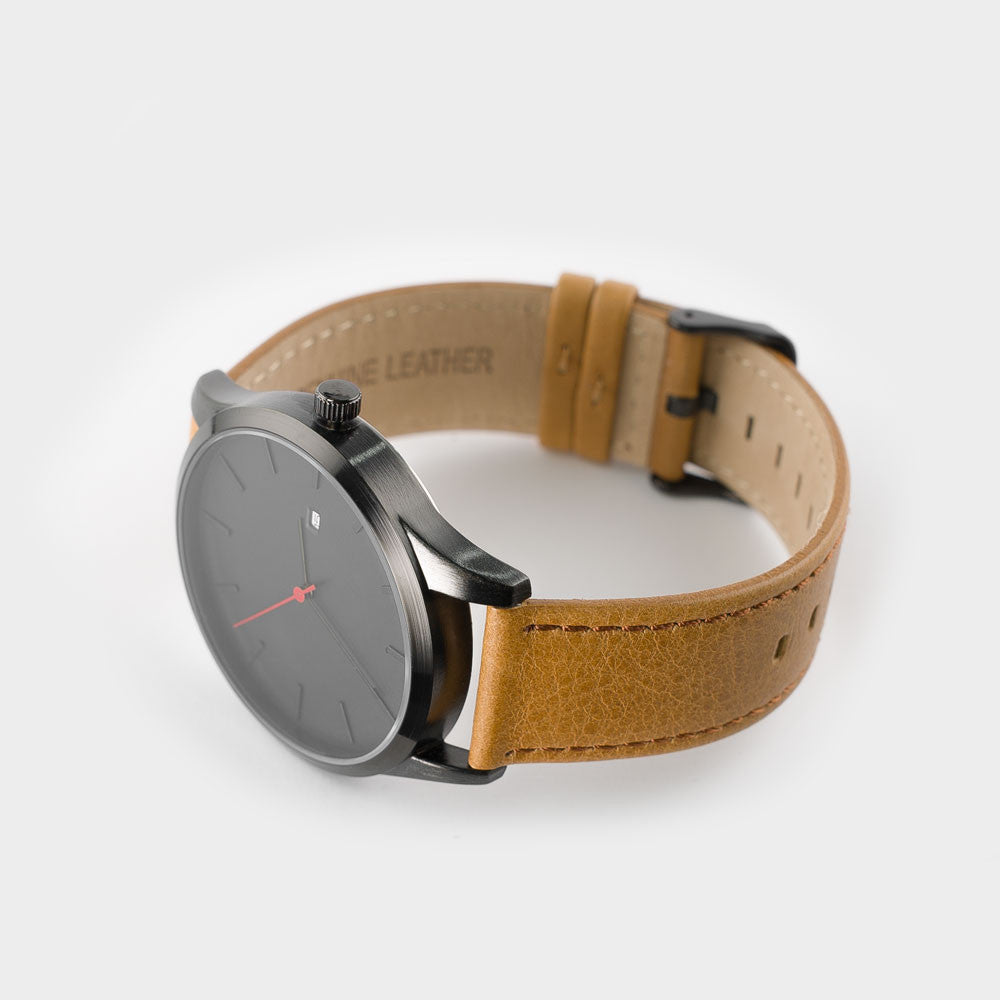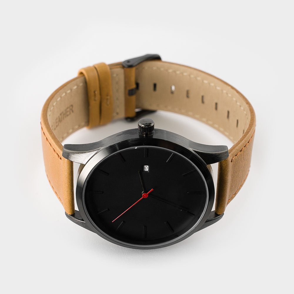 The Epcot Black & Tan Watch's dial is minimal, so what has been placed on there has been well-thought out. A red second hand ticks around a black dial that stuns with its simple sleek look, and it features a cleverly placed date window for extra functionality.
