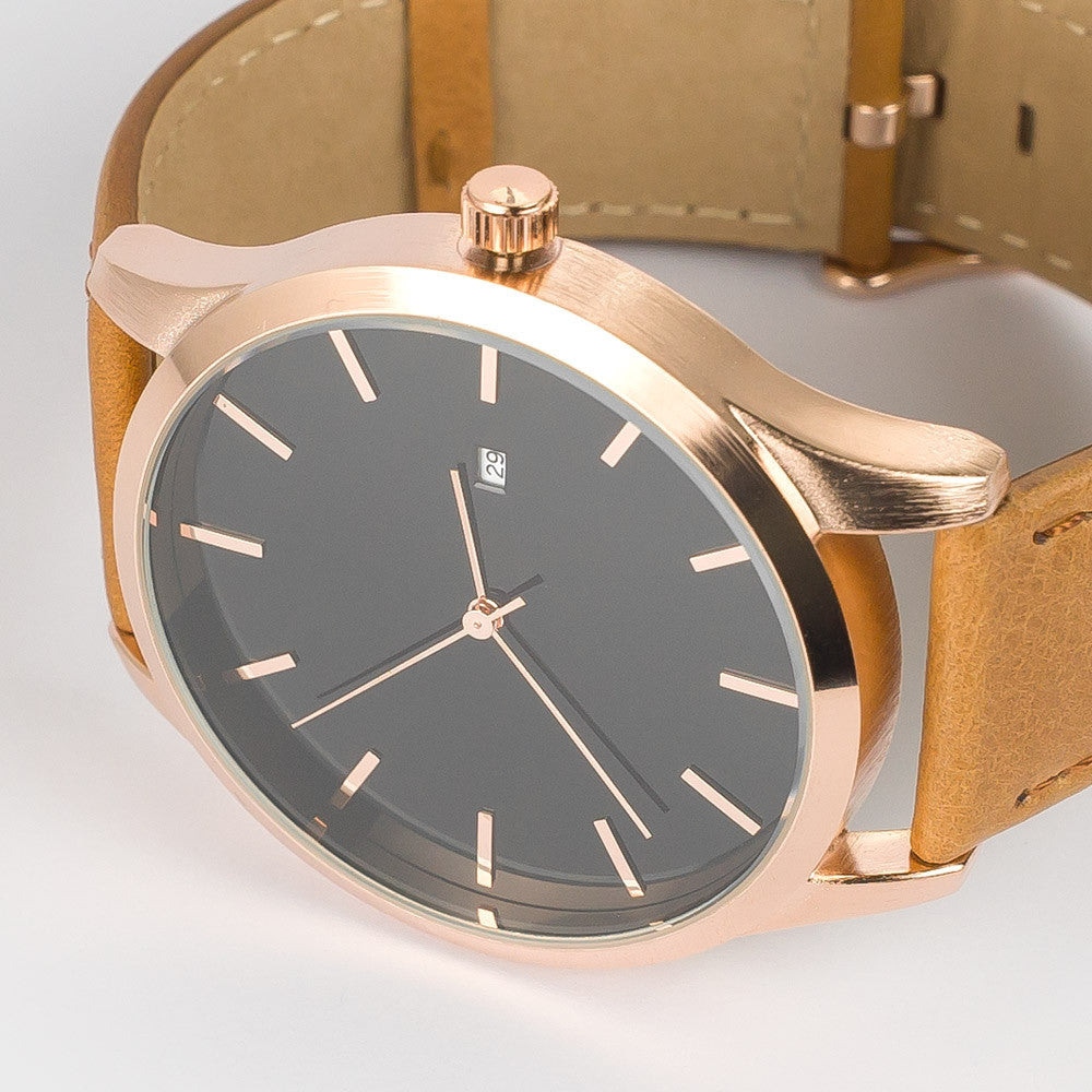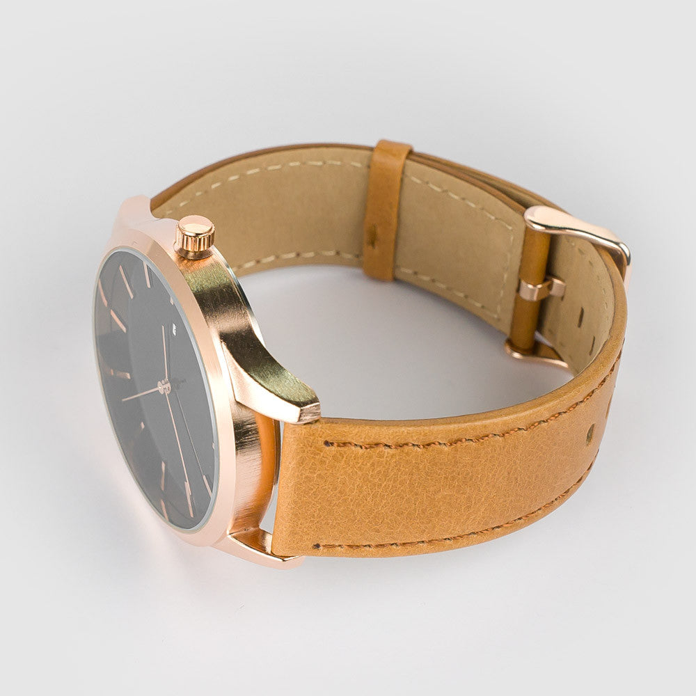 The final touch to the subtle and elegant color combination is a tan strap, which is made from supple genuine leather designed for comfort.