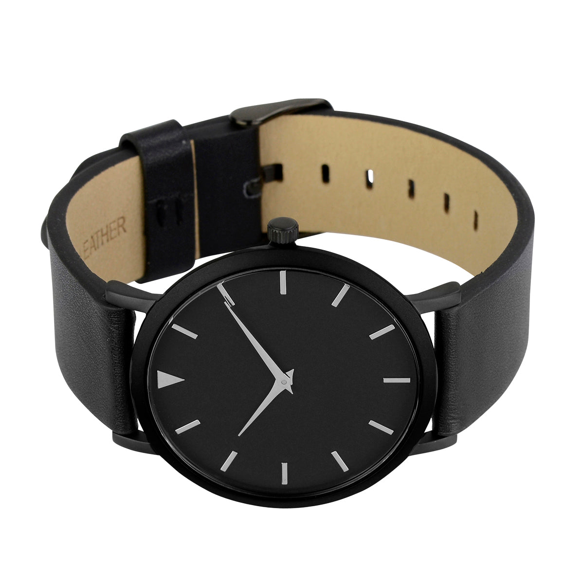 Add the finishing touch to your elegant casual or smart casual outfit with our Classic Black & Black watch. With smooth black genuine leather straps, a beautifully finished stainless steel case and a perfect clean design you will not be disappointed with this watch.